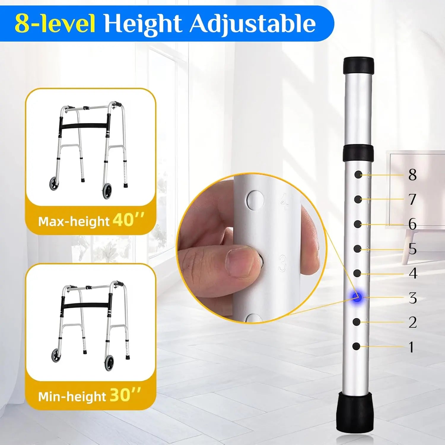 Durable Lightweight Aluminum FrameConstructed with a 1.25mm thickened aluminum alloy frame, offering long-lasting strength without unnecessary weight—ideal for foldable walkers for seniors.