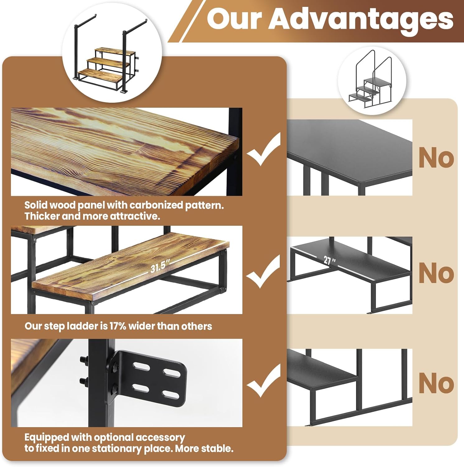 Hiring a mason to build a permanent concrete step was costly, and reliable installers were hard to find. Temporary plastic steps shifted over time, and indoor stools were unsafe outdoors. Nothing available felt secure, durable, or truly senior-friendly.